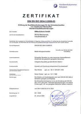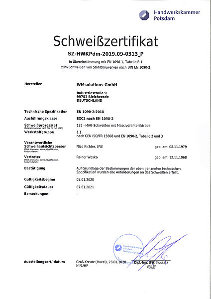 Unsere Kernkompetenz ist und bleibt das Fügen metallischer Werkstoffe durch Schweißen. Dauerfeste und langlebige Stahlbaukonstruktionen zeichnen sich insbesondere durch eine hohe Schweißqualität und eine intensive Schweißvorbereitung und -nachbereitung aus. WMsolutions wendet überwiegend das Impulsschweißverfahren an, welches sich im Gegensatz zum konventionellen MIG/MAG-Schweißen durch deutlich weniger Verzug und durch nahezu keine Schweißspritzer auszeichnet. Qualität erkennt man am Detail.